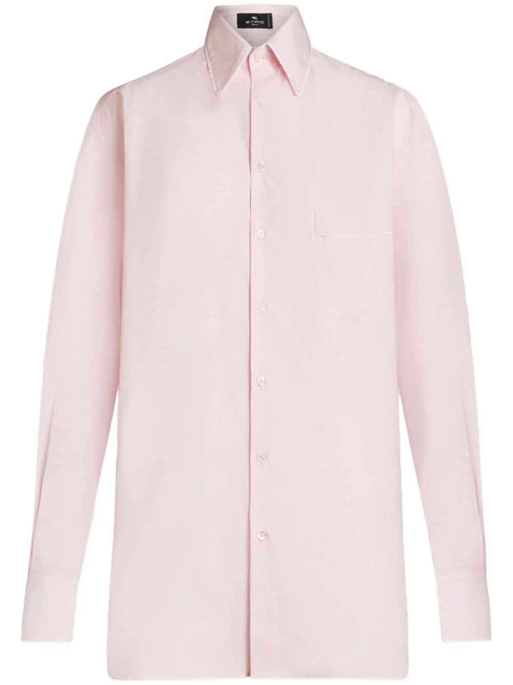 piped-trim cotton-poplin shirt Highlights - Light pink - Cotton - Poplin texture - Piped-trim detailing - Straight-point collar - Front button fastening - Long sleeves - Buttoned cuffs - Chest patch pocket - Rear curved hem Made in Italy Composition Cotton 100%