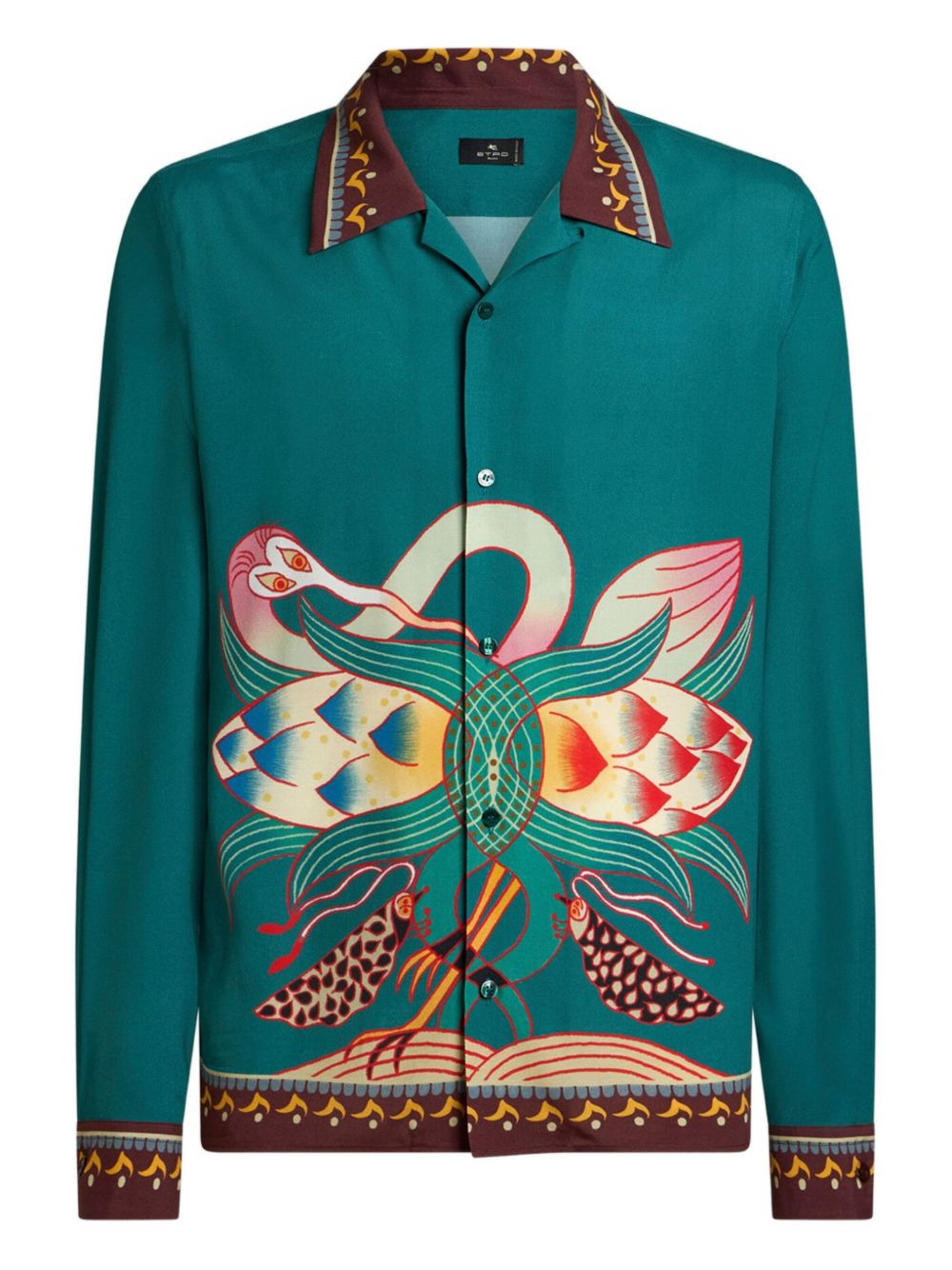 placed-print long-sleeved shirt Highlights - Teal - Bird print - Revere collar - Button fastening Made in Italy Composition Fabric 100% Washing instructions Read Manufacturer Guidelines
