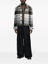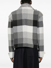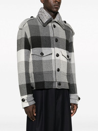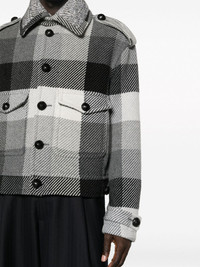 plaid-check button-up wool blend jacket Highlights - Anthracite grey/charcoal grey/cream white - Wool blend - Twill weave - Plaid check pattern - Pointed flat collar - Front button fastening - Button fastening at the shoulder - Drop shoulder - Long sleeves - Belted cuffs - Two front flap pockets - Straight hem Made in Italy Composition Outer: Wool 70%, Polyamide 25%, Other fibres 5% Lining: Viscose 52%, Acetate 48% SIZE & FIT Model measurements Height 6 ft 2 in(1.87 m) Bust/Chest 36.41 in(92.5 cm) Hips 37 in(94 cm) Waist 29.52 in(75 cm) Measurement CHEST 47.24 in(120 cm) SLEEVE LENGTH 35.82 in(91 cm) Shoulder Width 22.04 in(56 cm) WAIST 46.45 in(118 cm) FittingInformation Designed for a relaxed fit, this piece allows for comfort and movement when worn The adjustable tabs allow for fitted preferences Made from a midweight non-stretch fabric This piece fits true to size – take your usual size Washing instructions Dry Clean Only