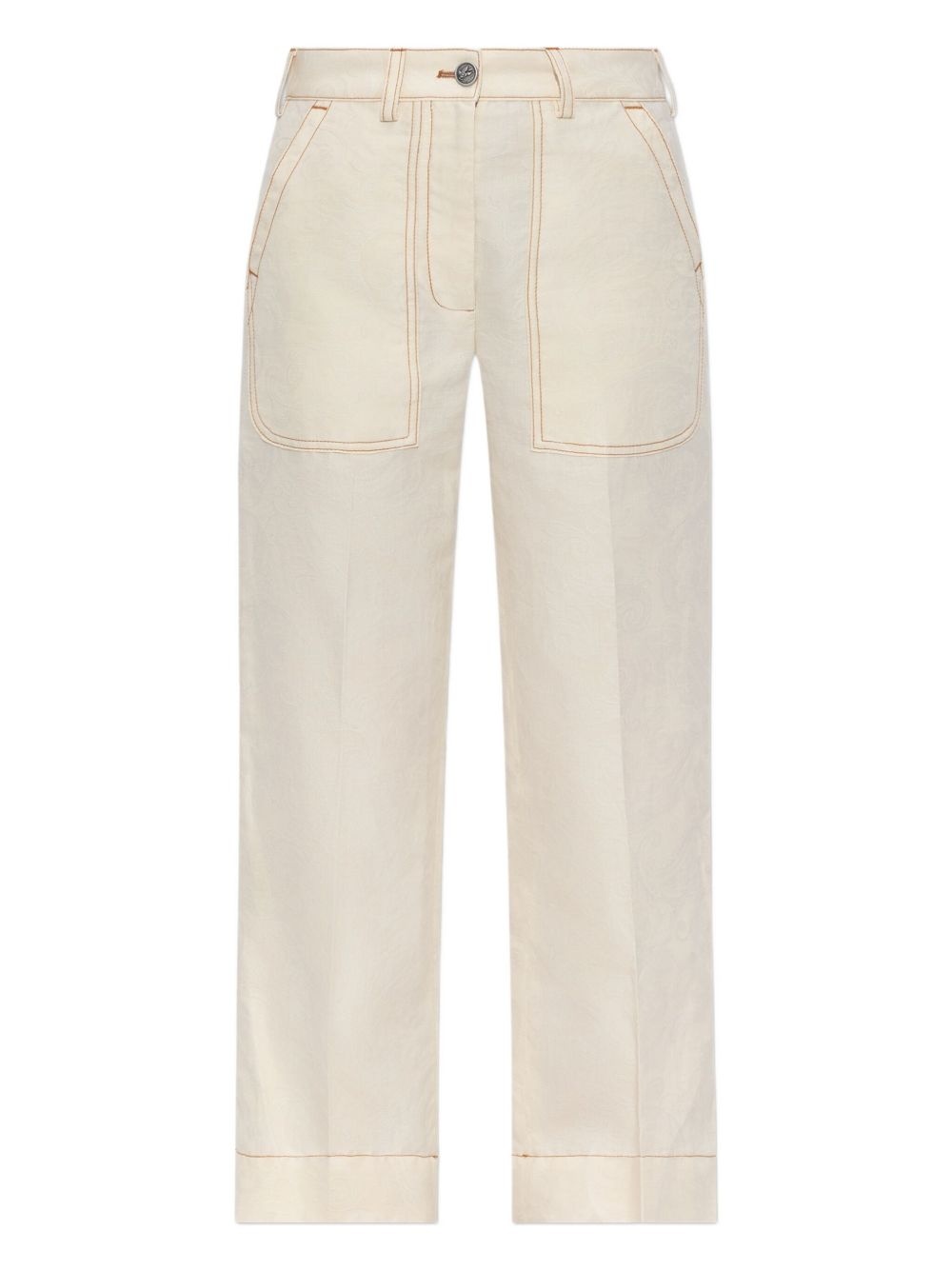 pocket-detail trousers Highlights - Off-white - Contrast stitching - Patch pockets - Button fastening - Cuffed hem Made in Italy Composition Outer: Cotton 58% Linen/Flax 42% Washing instructions Read Manufacturer Guidelines