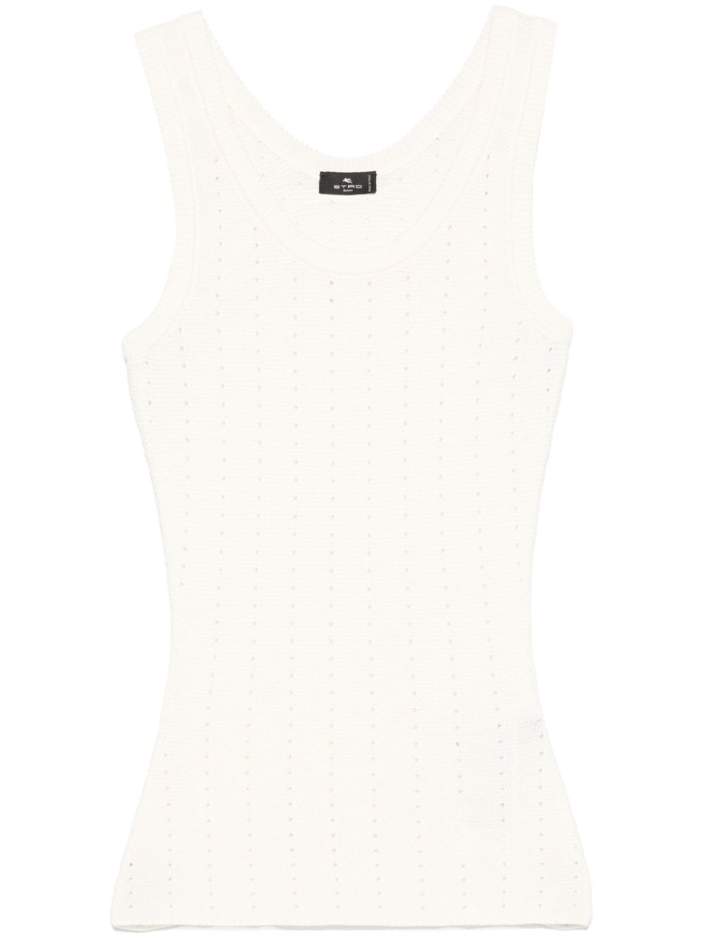 pointelle-knit top Highlights - White - Scoop neck - Sleeveless - Straight hem Made in Italy Composition Silk 76%, Polyamide 24% SIZE & FIT Model measurements Height 5 ft 10 in(1.77 m) Bust/Chest 32.28 in(82 cm) Hips 35.03 in(89 cm) Waist 25.19 in(64 cm) FittingInformation Designed for a close fit throughout Made with a midweight knit, this piece offers some stretch