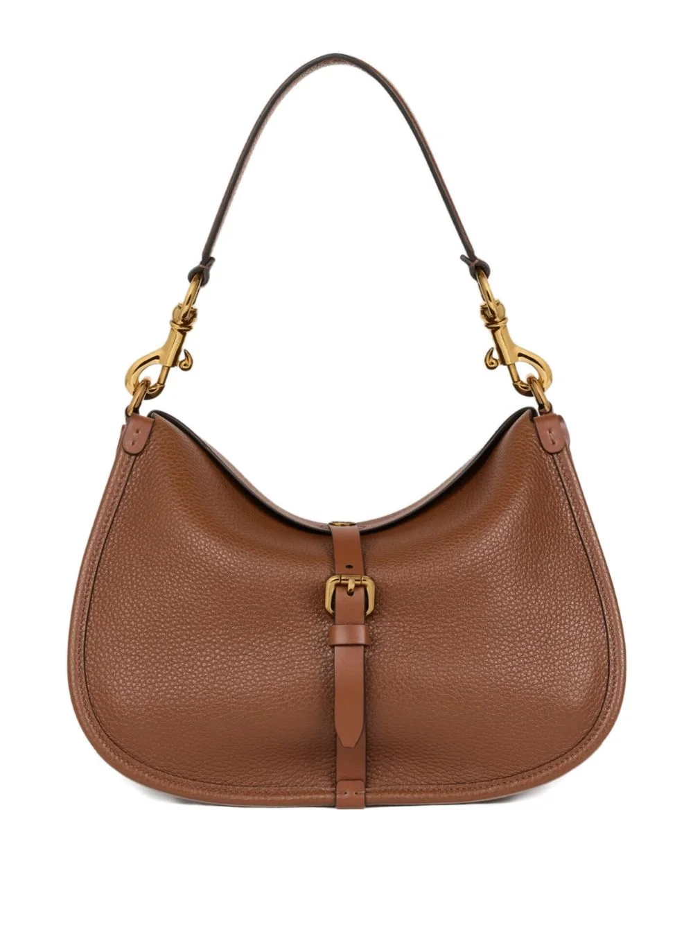 Pony buckle-fastening leather shoulder bag Highlights - Brown - Pebbled leather - Buckle fastening - Top handle - Curved silhouette - Gold-tone hardware Made in Italy Composition Outer: Calf Leather 100% Lining: Calf Leather 100% SIZE & FIT Measurement WIDTH 17.51 in(44.5 cm) HEIGHT 12.4 in(31.5 cm) DEPTH 1.18 in(3 cm)