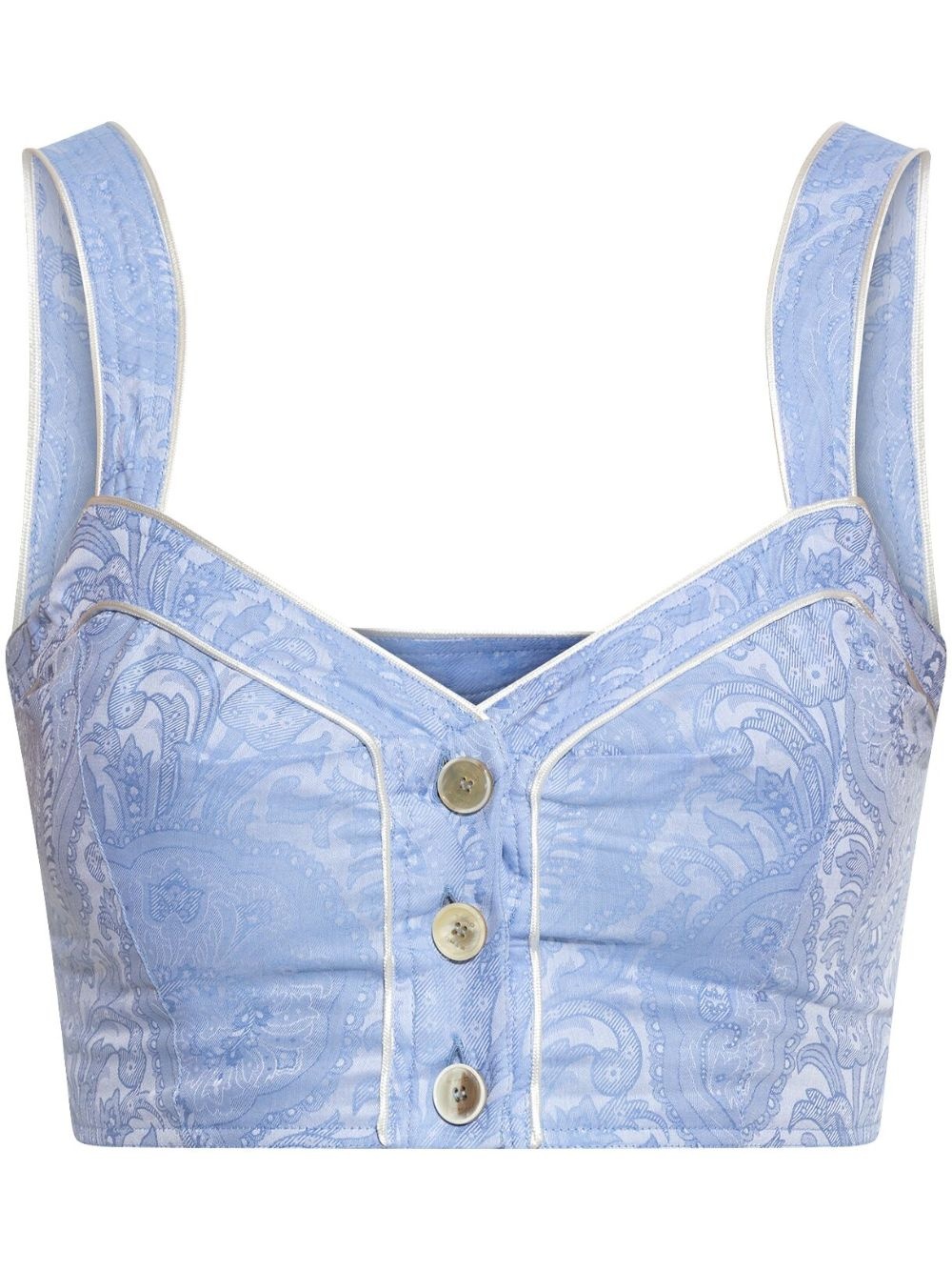 printed cropped top Highlights - Light blue - Front button fastening - Paisley print - Wide shoulder straps - Cropped Made in Italy Composition Outer: Cotton 100%