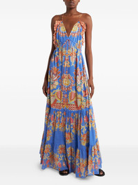 Ruffled tiered printed cotton-voile maxi dress Blue