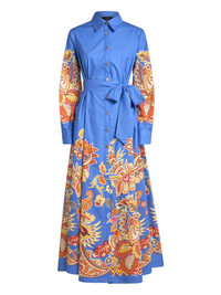 printed dress Highlights - Royal blue - Front button fastening - Belted waist - Classic collar - Flared skirt Made in Italy Composition Fabric 100% Washing instructions Read Manufacturer Guidelines