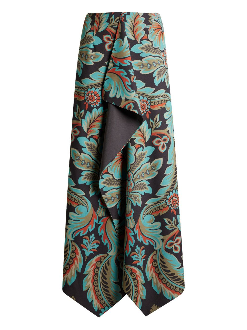 printed midi skirt Highlights - Black/multicolour - Asymmetric hem - Draped detail - Paisley print - Concealed zip fastening Made in Italy Composition Polyester 92%, Elastane 8% Washing instructions Read Manufacturer Guidelines