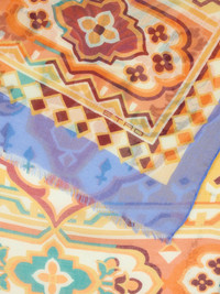 printed scarf Highlights - Light yellow - Wraparound style - Contrasting border - Frayed edge - Rectangle shape Made in Italy Composition Silk 100% SIZE & FIT Measurement LENGTH 66.92 in(170 cm) WIDTH 27.55 in(70 cm)