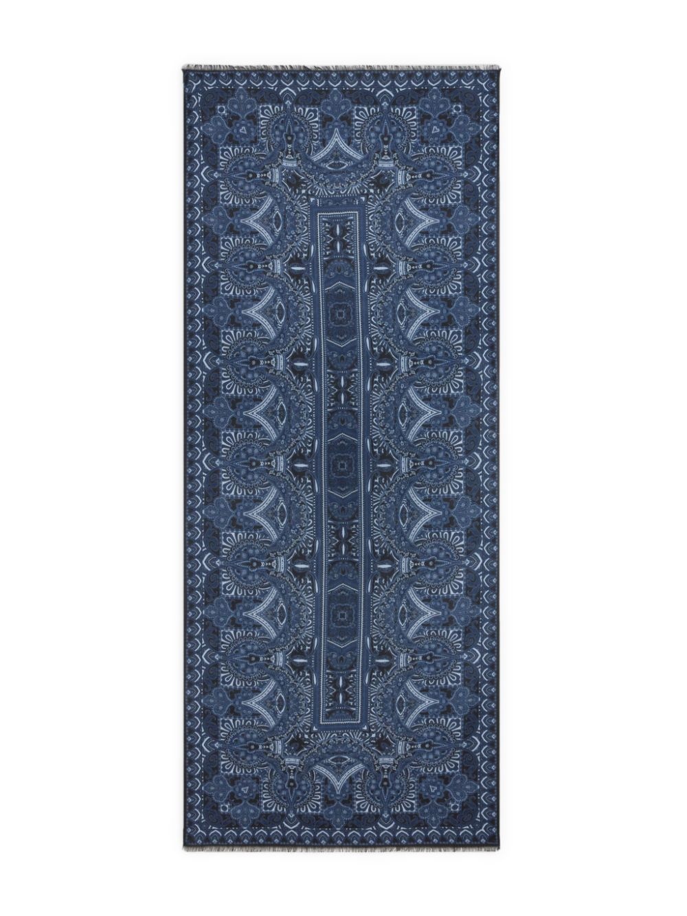 printed scarf Highlights - Blue - Fringed edge - Rectangle shape Made in Italy Composition Silk 100% SIZE & FIT Measurement LENGTH 66.92 in(170 cm) WIDTH 27.55 in(70 cm)