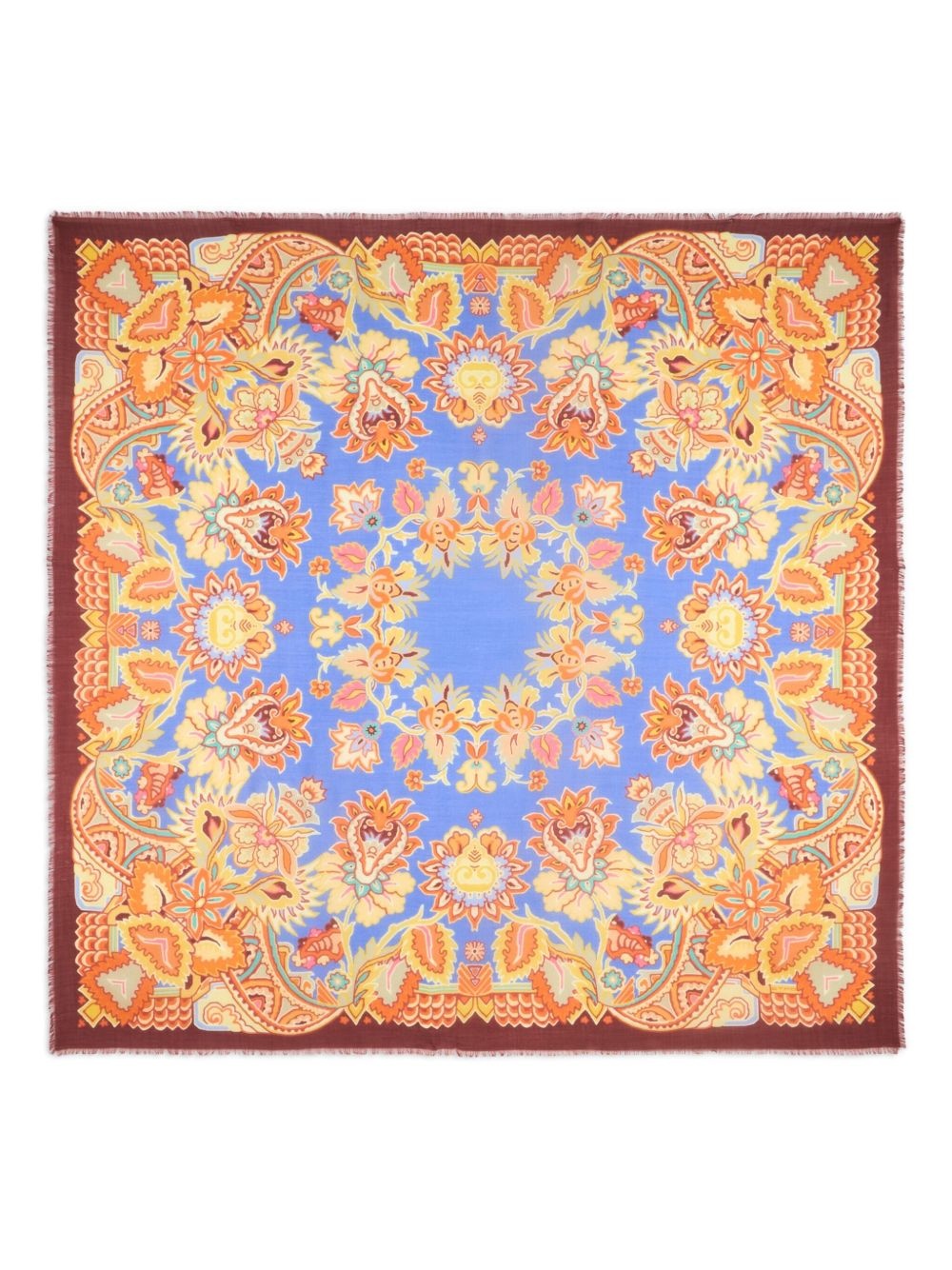 printed shawl Highlights - Sky blue - Logo print to the front - Frayed edge - Square shape Made in Italy Composition Cashmere 100%, Silk 100% SIZE & FIT Measurement LENGTH 55.11 in(140 cm) WIDTH 55.11 in(140 cm)