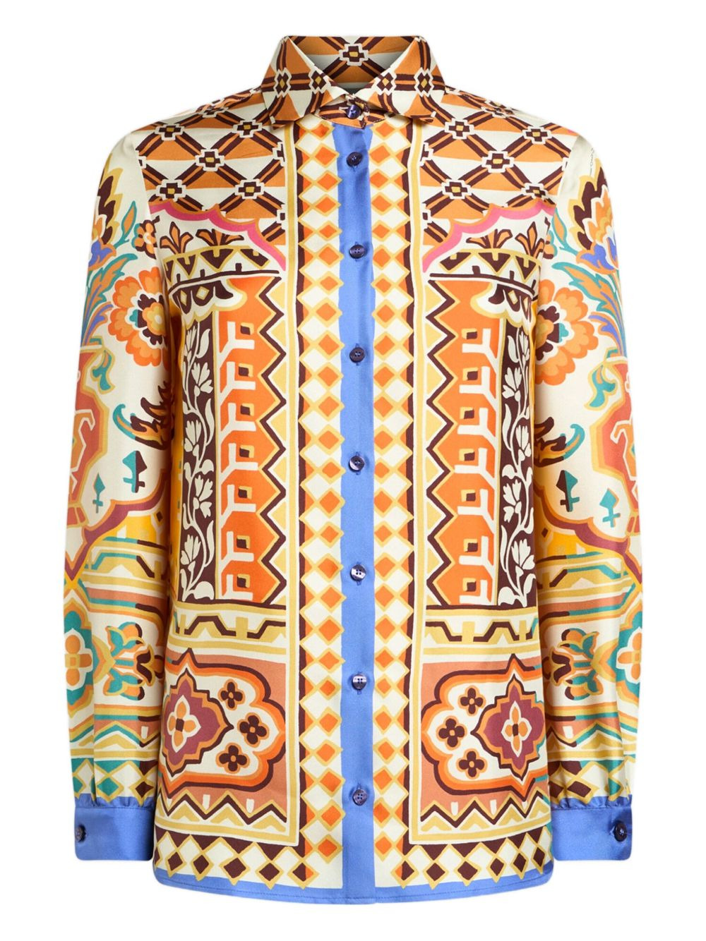 printed silk shirt Highlights - Mustard yellow - Long sleeves - Button fastening - Classic collar Made in Italy Composition Silk 100% Washing instructions Dry Clean Only