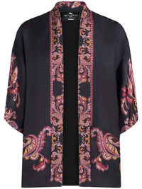 printed silk shirt Highlights - Black/multicolour - Silk - Twill weave - Paisley print - Open front - V-neck - Drop shoulder - Half-length sleeves - Contrasting border - Straight hem Made In Italy Composition Silk 100% Washing instructions Read Manufacturer Guidelines