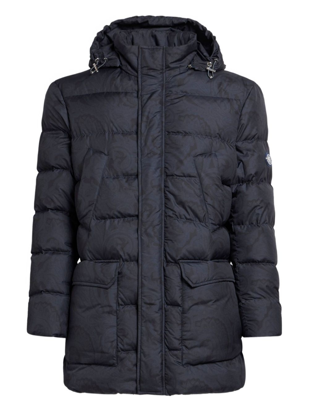 quilted hooded puffer jacket Highlights - Black - Padded design - Detachable hood - Four front pockets - Paisley pattern Made in Italy Composition Down 85%, Feather 15% Lining: Polyester 100% Outer: Polyester 100% Washing instructions Read Manufacturer Guidelines