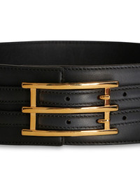 rectangle-buckle leather belt Highlights - Black - Calfskin - Tonal stitching - Gold-tone hardware - Buckle fastening - Punched holes - Adjustable fit Made in Italy Composition Outer: CALFSKIN 100% Lining: Leather 100%