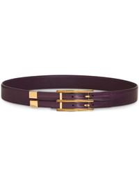 rectangle-buckle leather belt Highlights - Bordeaux red - Calfskin - Tonal stitching - Gold-tone hardware - Buckle fastening - Punched holes - Adjustable fit Made in Italy Composition Outer: CALFSKIN 100% Lining: Leather 100%