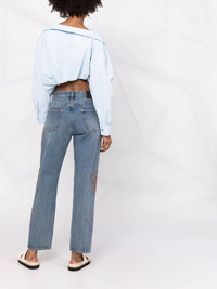 rhinestone-embellished paisley jeans ETRO recreates their signature paisley pattern with sparkling rhinestones and studs embellished at the sides of these cotton-denim jeans. A pattern created by Gerolamo Etro in 1981, this pair showcases how it has evolved and adapted to a contemporary aesthetic. Made in Italy Composition Cotton 100% SIZE & FIT Model measurements Height 5 ft 11 in(1.8 m) Bust/Chest 31.49 in(80 cm) Hips 35.82 in(91 cm) Waist 24.8 in(63 cm) FittingInformation This piece fits true to size. We recommend you get your regular size Designed to be fitted at the waist and hips, loose over the leg Made with a mid-weight non-stretch fabric Washing instructions Hand Wash