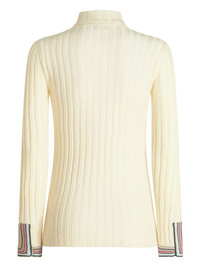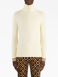 ribbed-knit striped-edge jumper Highlights - White - Wool - Ribbed knit - Striped edge - High neck - Long sleeves - Straight hem Made in Italy Composition Wool 100% SIZE & FIT FittingInformation Designed for a close fit throughout Made with a midweight knit, this piece offers some stretch This piece fits true to size – take your usual size Washing instructions Read Manufacturer Guidelines