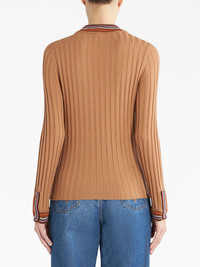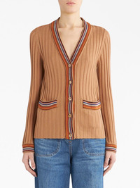 ribbed-knit V-neck cardigan Highlights - Light brown - Wool - Ribbed knit - Striped edge - V-neck - Front button fastening - Long sleeves - Straight hem Made in Italy Composition Wool 100% Washing instructions Read Manufacturer Guidelines