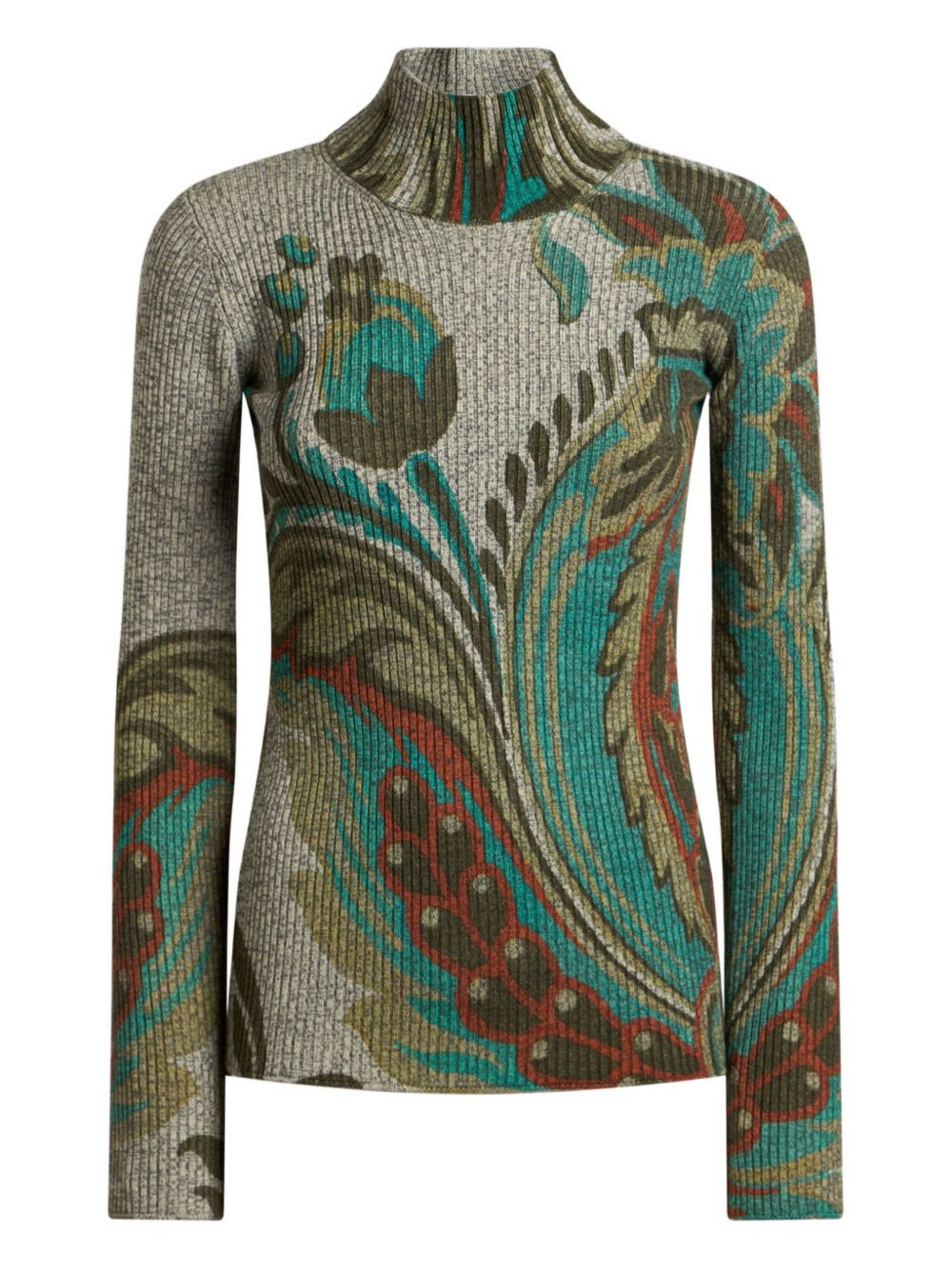 ribbed paisley-print turtleneck sweater Highlights - Grey - Ribbed texture - Paisley print - Turtleneck - Long sleeves Made in Italy Composition Wool 100% Washing instructions Read Manufacturer Guidelines