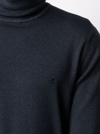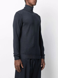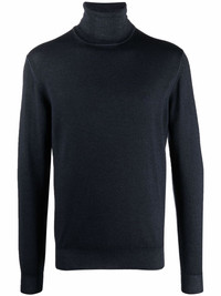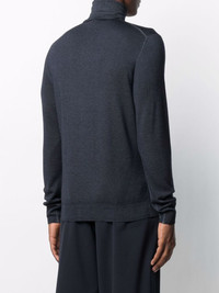 roll-neck jumper dark blue virgin wool ribbed detailing roll neck long sleeves straight hem Made in Italy Composition Virgin Wool 100% SIZE & FIT Model measurements Height 6 ft 1 in(1.86 m) Bust/Chest 36.61 in(93 cm) Hips 36.61 in(93 cm) Waist 29.92 in(76 cm) FittingInformation This piece fits true to size. We recommend you get your regular size Cut for a relaxed fit Made with a mid-weight fabric Washing instructions Hand Wash
