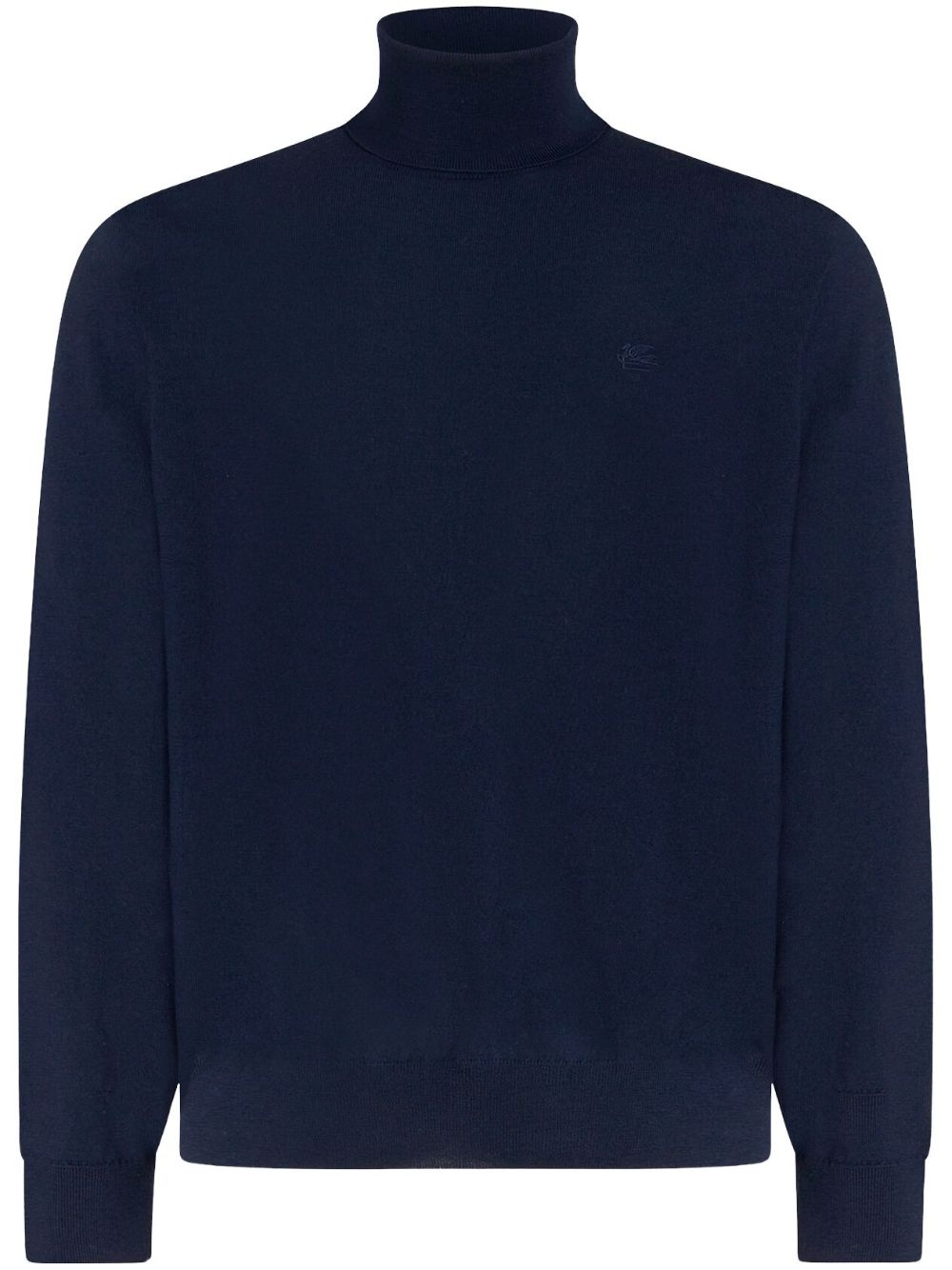 roll-neck virgin wool jumper Highlights - Prussian blue - Virgin wool - Knitted construction - Embroidered logo at the chest - Roll neck - Long sleeves - Ribbed cuffs and hem - Straight hem Made in Italy Composition Virgin Wool 100% SIZE & FIT Measurement CHEST 44.09 in(112 cm) SLEEVE LENGTH 34.25 in(87 cm) Shoulder Width 18.11 in(46 cm) FittingInformation Designed for a regular fit, offering a comfortable loose fit throughout the body Made with a midweight knit, this piece offers some stretch This piece fits true to size – take your usual size