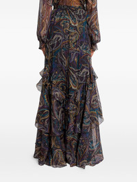 ruffled paisley-motif silk maxi skirt Highlights - Black,blue and multicolour - Paisley foliage motif - Tiered ruffles - Pleated - Semi-sheer - Maxi length Made in Italy Composition Silk 100% Washing instructions Read Manufacturer Guidelines