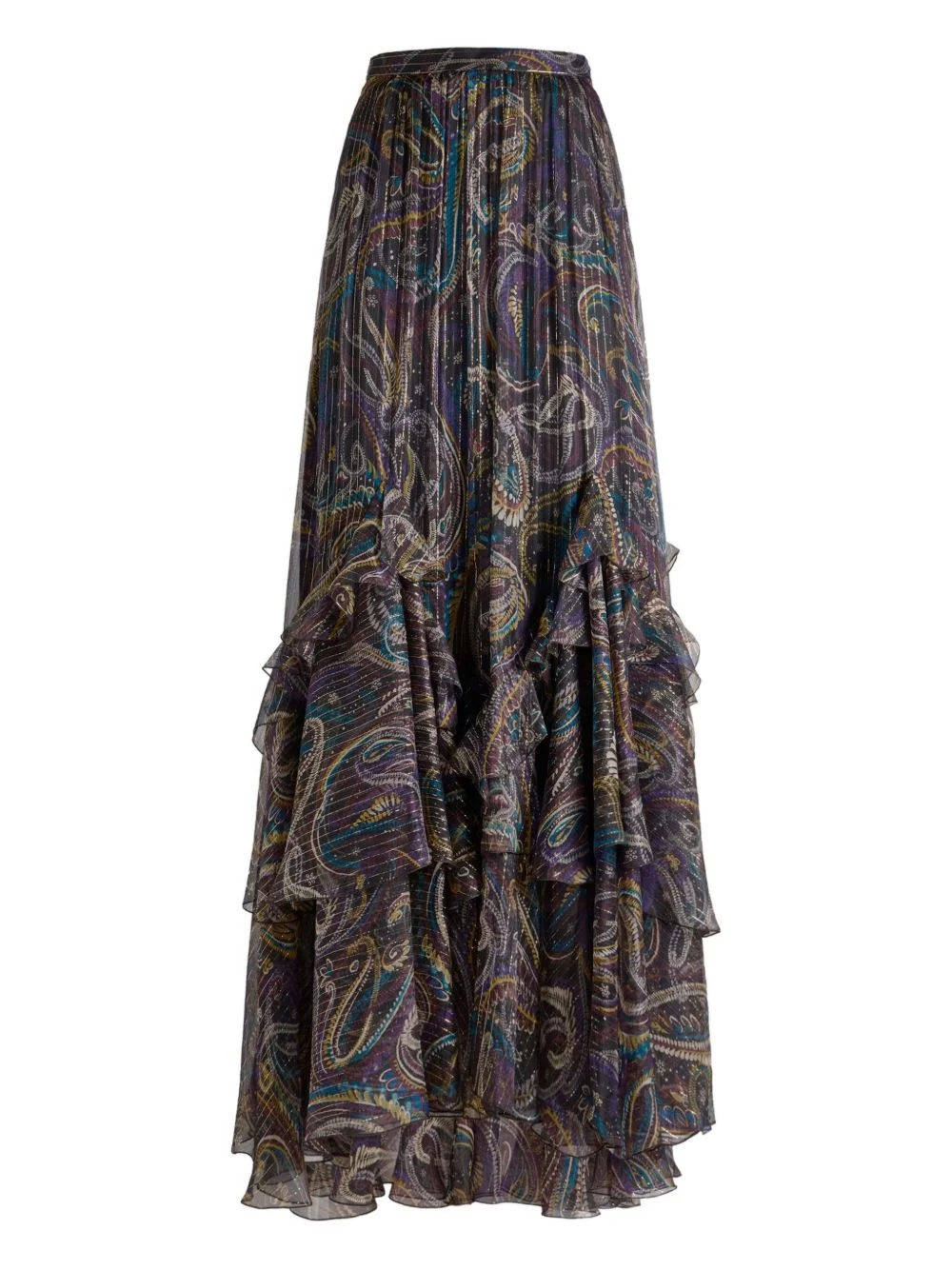 SILK MAXI SKIRT WITH PAISLEY FOLIAGE MOTIF