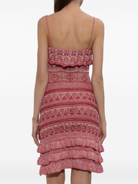 ruffled spaghetti-strap mini dress Highlights - Pink and multicolour - Ruffled trim - Geometric pattern - Spaghetti straps - Tiered hem Made in Italy Composition Cotton 99%, Elastane 1% Washing instructions Read Manufacturer Guidelines