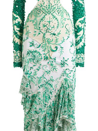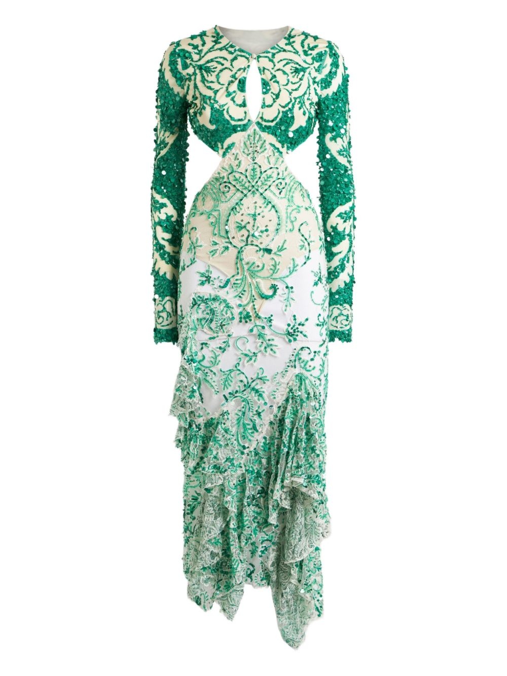 sequin-embellished dress Highlights - Emerald green - Front button fastening - Round neck - Long sleeves - Cut-out detailing Made in Italy Composition Lining: Viscose 100% Outer: Viscose 100%, Polyamide 81%, Cotton 19%