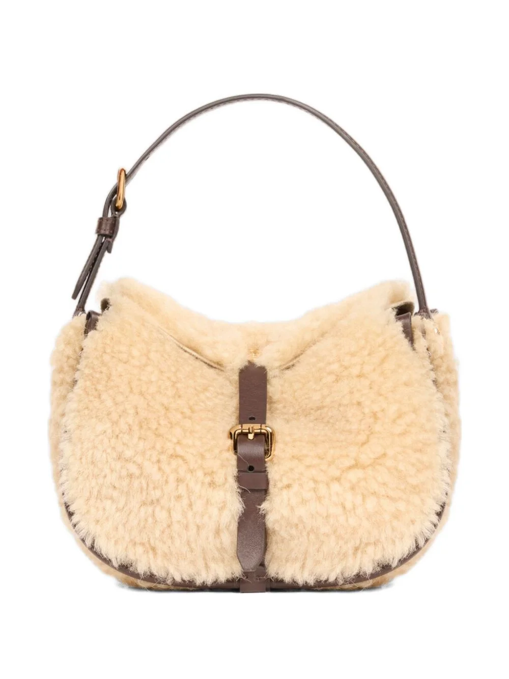 shearling-embellished cross body bag Highlights - Cream - Shearling texture - Top handle - Buckle detail - Gold-tone hardware - Internal slip pocket Made in Italy Composition Outer: CALFSKIN 100%, Lamb Shearling 100% Lining: CALFSKIN 100%