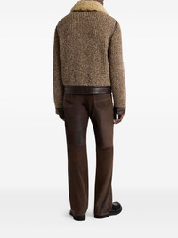 shearling knit-sleeve jacket Highlights - Dark-brown - Shearling collar - Leather body - Knit sleeves - Ribbed knit cuffs - Button fastening Imported Composition Calf Leather 100%, Sheep Skin/Shearling 100%