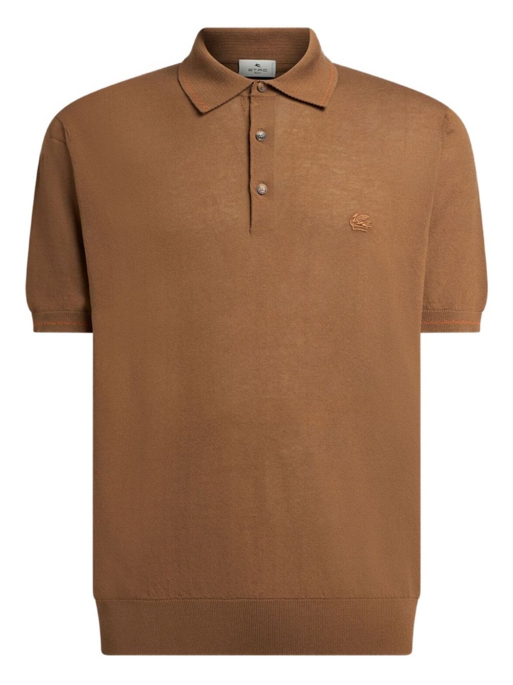 short-sleeve polo shirt Highlights - Brown - Button placket - Polo collar - Embroidered logo - Flat hem Made in Italy Composition Cotton 100%