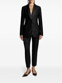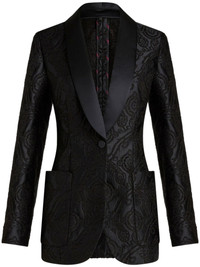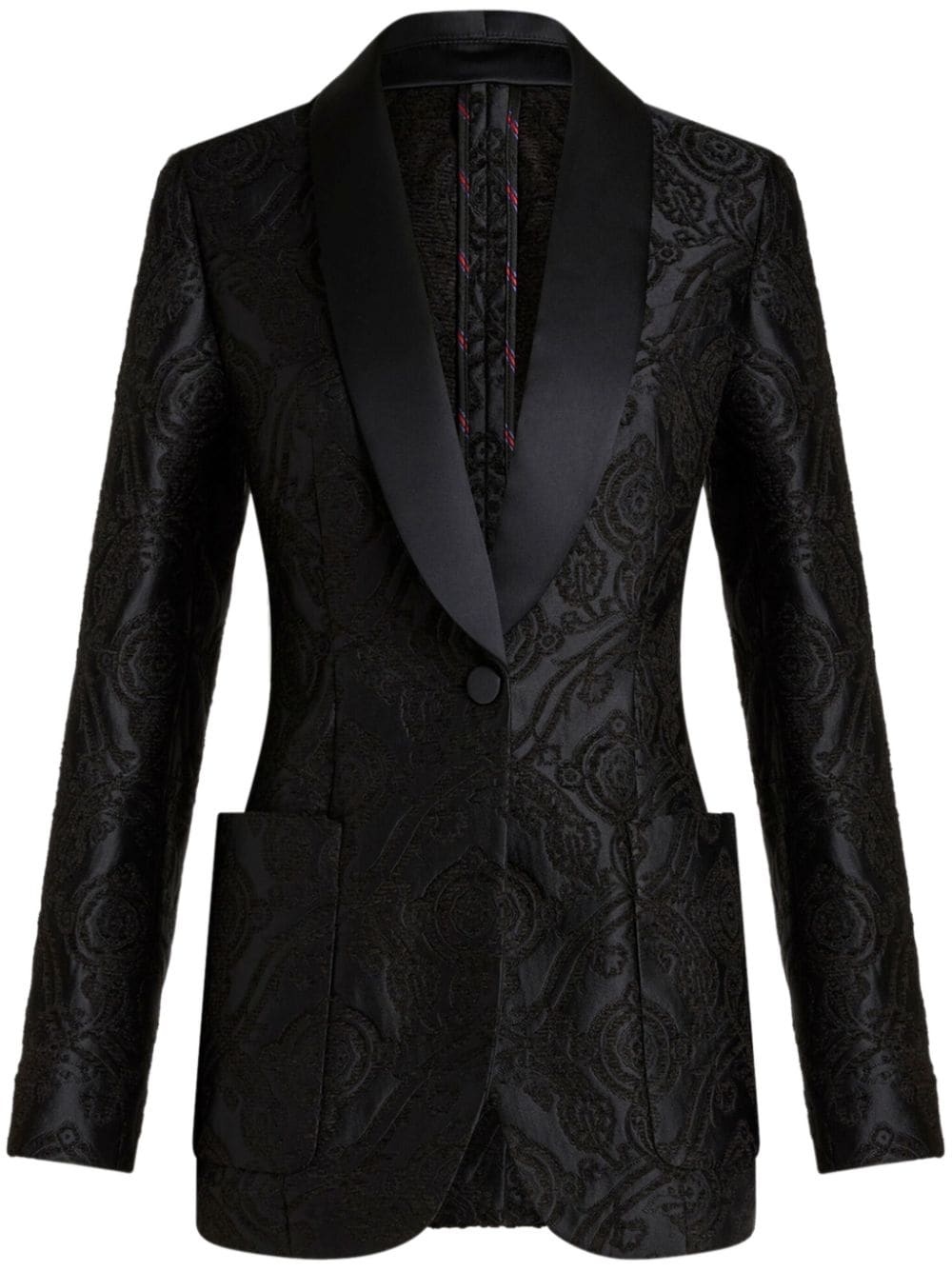 silk jacquard blazer Highlights - Black - Silk - All-over paisley jacquard weave - Shawl lapels - Fitted waistline - Front button fastening - Long sleeves - Two front patch pockets Made in Italy Composition Acrylic 40%, Viscose 20%, Polyester 15%, Acetate 13%, Silk 12%