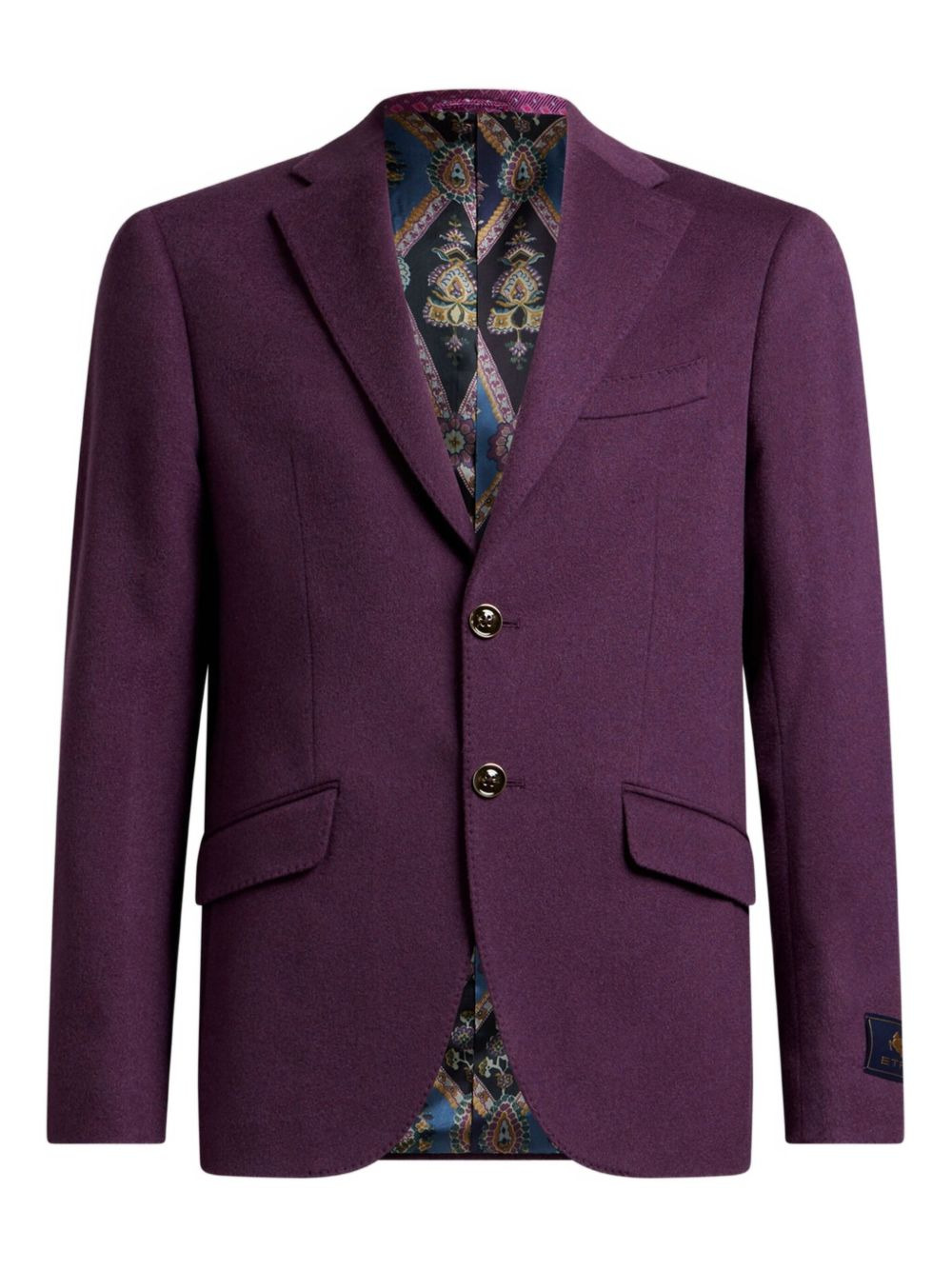 single-breasted blazer Highlights - Purple - Single-breasted - Button closure - Flap pockets - Paisley patterned lining - Notched lapel Made in Italy Composition Lining: Viscose 100% Outer: Cashmere 100% Washing instructions Read Manufacturer Guidelines