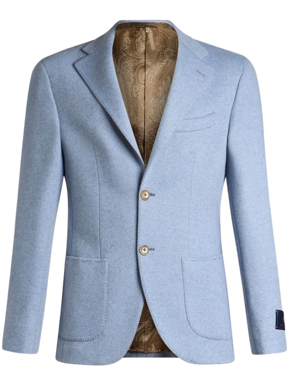 single-breasted blazer Highlights - Light blue - Wool-cashmere blend - Front button fastening - Notched lapels - Long sleeves - Jetted chest pocket - Two front patch pockets - Applique logo - Buttoned cuffs - English rear vents - Full lining - Straight hem Made in Italy Composition Outer: Wool 40%, Cashmere 33%, Polyamide 27% Lining: Viscose 100%