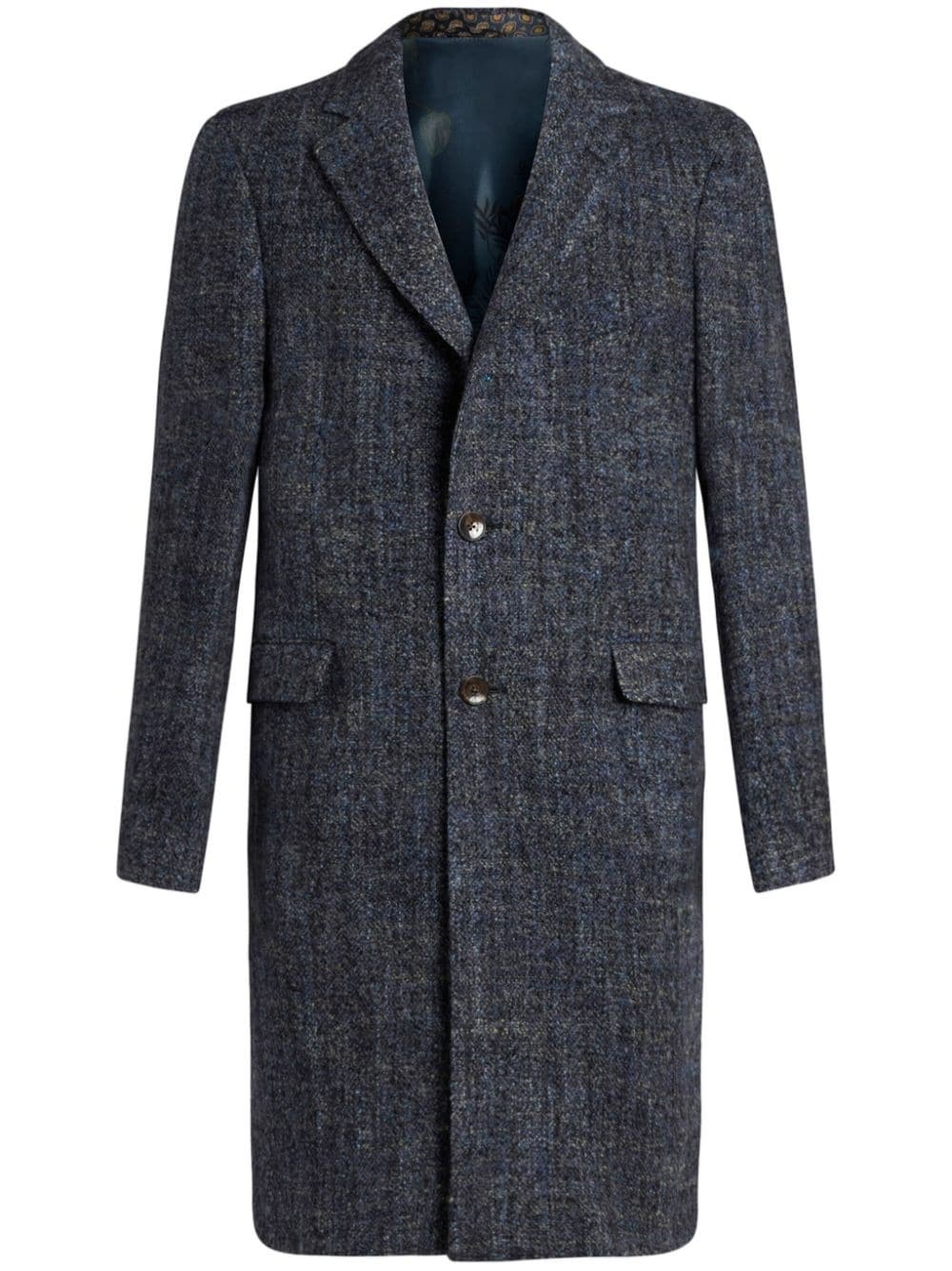 single-breasted coat Highlights - American rear vent - Navy blue - Wool blend - Notched lapels - Front button fastening - Long sleeves - Buttoned cuffs - Two side flap pockets - Straight hem Made in Italy Composition Outer: Wool 90%, Polyamide 10% Lining: Viscose 100% Washing instructions Read Manufacturer Guidelines