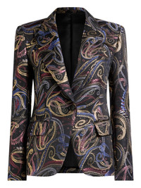 single-breasted paisley blazer Highlights - Black multicoloured - Paisley foliage motif - Single-breasted - Flap pockets - Button fastening Made in Italy Composition Fabric 100% Washing instructions Read Manufacturer Guidelines