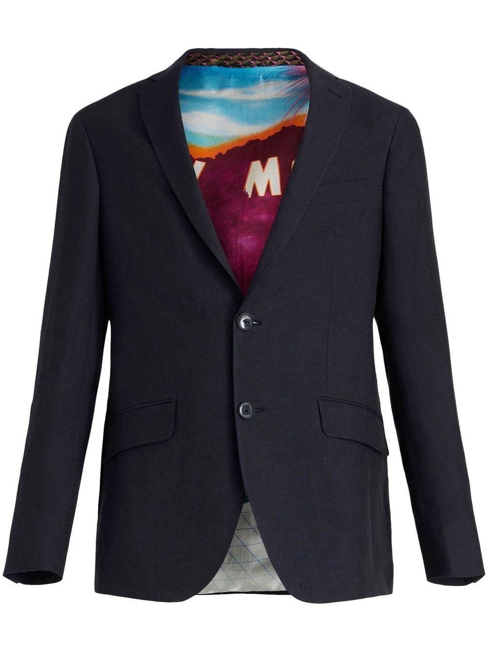 single-breasted tailored blazer Highlights - Navy blue - Linen blend - Classic lapels - Front button fastening - Two side flap pockets - Long sleeves Made in Italy Composition Outer: Linen/Flax 100% Lining: Cupro 50%, Viscose 50%