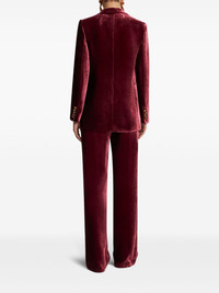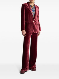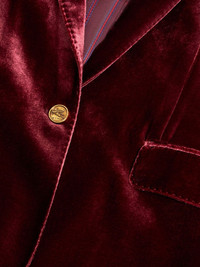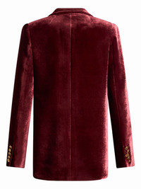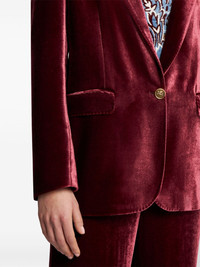 single-breasted velvet blazer Highlights - Bordeaux red - Velvet - Signature pegaso motif - Embossed gold-tone buttons - Notched lapels - Front button fastening - Long sleeves - Buttoned cuffs - Jetted chest pocket - Two front flap pockets - Straight hem - Striped lining Made in Italy Composition Outer: Viscose 80%, Silk 20% Lining: Viscose 52%, Acetate 48%