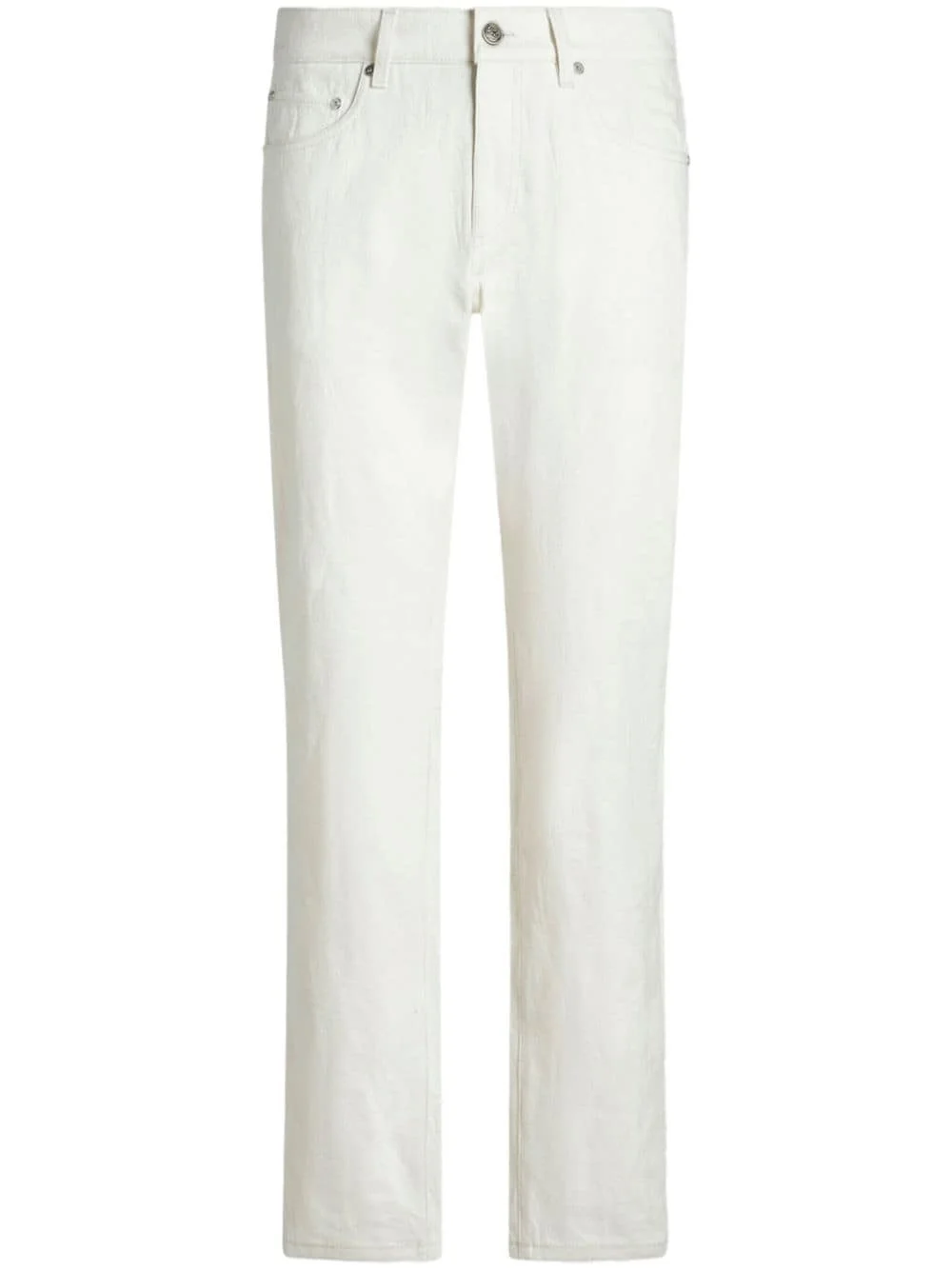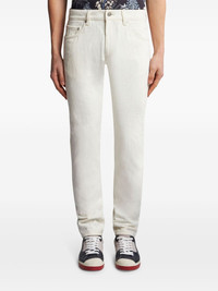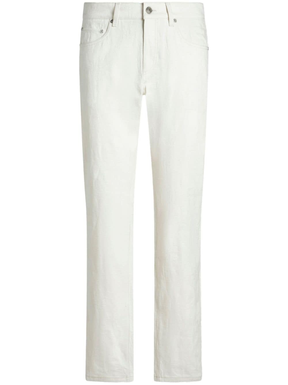 slim-cut jacquard jeans Highlights - Ivory white - Denim - Patterned jacquard - Rivet detailing - Mid-rise - Belt loops - Concealed fly and button fastening - Classic five pockets - Slim cut Made in Italy Composition Outer: Cotton 98%, Elastane 2%