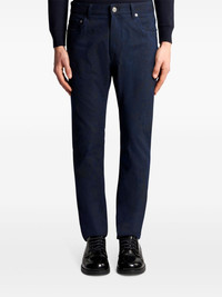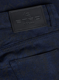 slim-cut jacquard jeans Highlights - Navy blue - Stretch-cotton - Denim - Patterned jacquard - Rivet detailing - Logo patch to the rear - Mid-rise - Belt loops - Concealed fly and button fastening - Slim cut Made in Italy Composition Cotton 98%, Elastane 2%