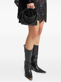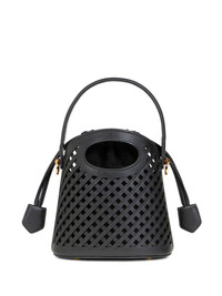 small Saturno grid cut-out crossbody bag Highlights - Black - Calf leather - Smooth grain - Cut-out detailing - Grid pattern - Gold-tone hardware - Embossed logo to the side - Top drawstring fastening - Single flat top handle - Adjustable detachable shoulder strap - Main compartment - Full lining - This piece comes complete with a protective dust bag. Made in Italy Composition Outer: Calf Leather 100%, Goat Skin 100% Lining: Polyester 100%
