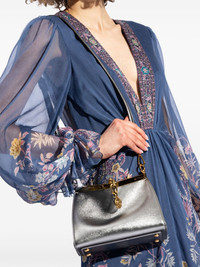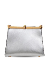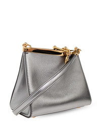 small Vella metallic leather bag Highlights - Silver-tone - Calf leather - Metallic finish - Gold-tone hardware - Logo charm - Detachable shoulder strap - Top clasp fastening - Main compartment - This piece comes complete with a protective dust bag. Made in Italy Composition Outer: Calf Leather 100% SIZE & FIT Measurement DEPTH 3.54 in(9 cm) HEIGHT 5.9 in(15 cm) WIDTH 8.26 in(21 cm)