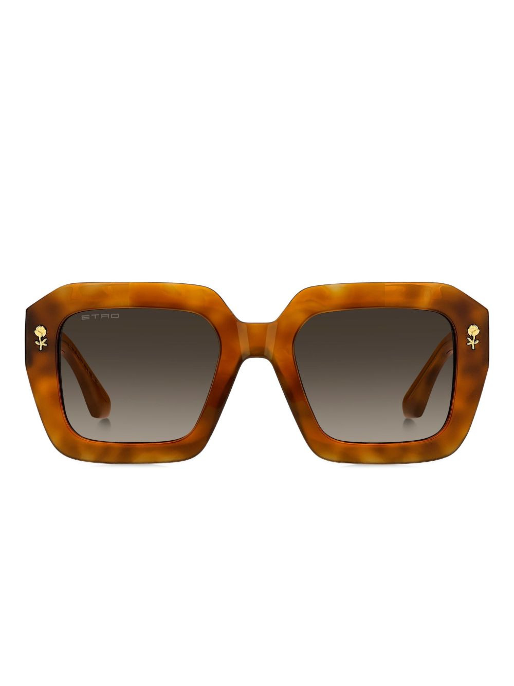 square-frame sunglasses Highlights - Brown - Square frame - Coloured stripes detail - Rose embellishment - Gradient lenses - Tortoiseshell effect Imported Composition Acetate 100% SIZE & FIT Measurement Arm Length 5.7 in(14.5 cm) Bridge Width 0.86 in(2.2 cm) Lens Diameter 1.73 in(4.4 cm)