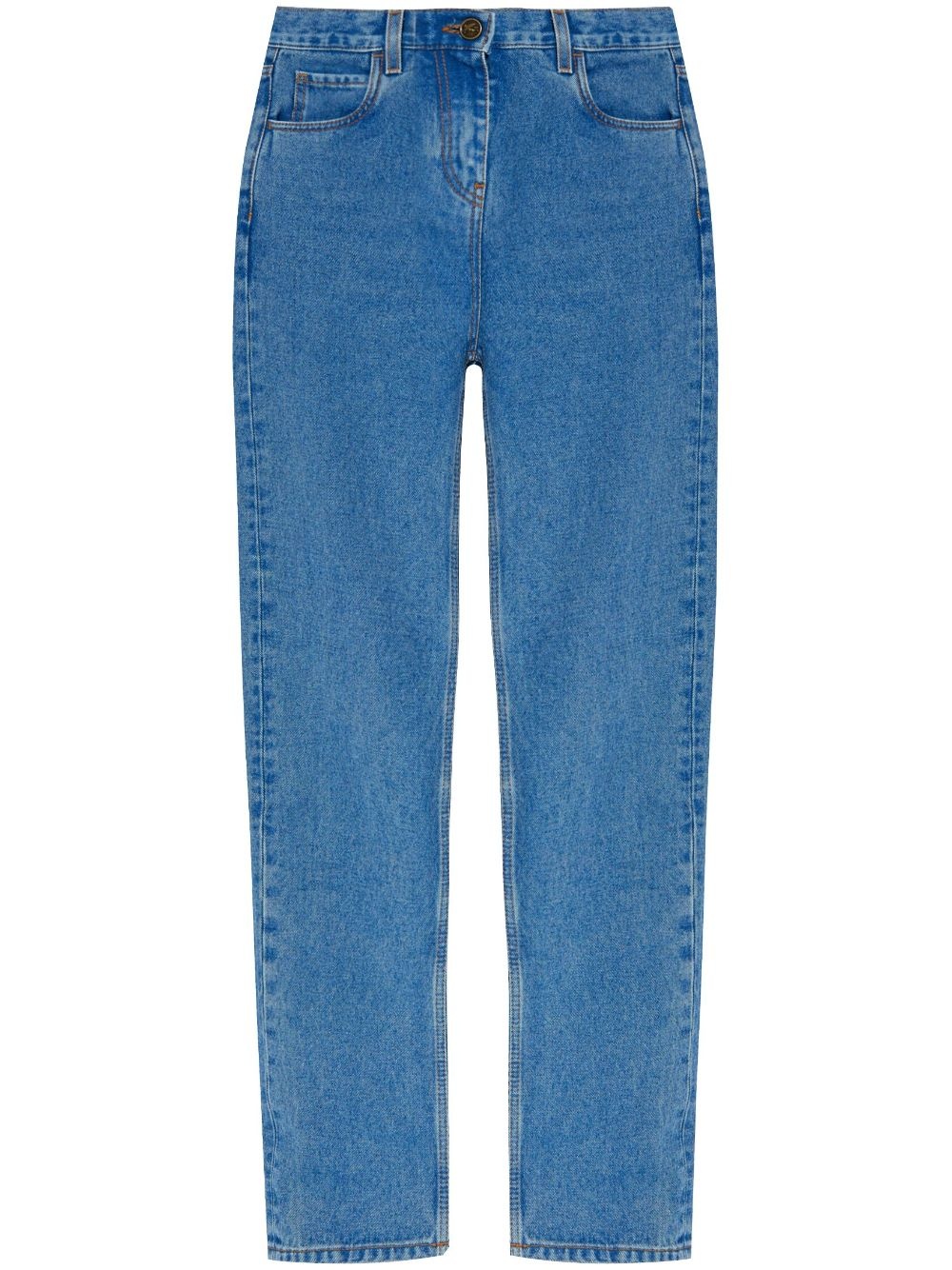 straigh-leg high-rise jeans Highlights - Blue - Cotton - Denim - Contrast stitching - Logo patch to the rear - Belt loops - High-rise - Straight leg - Front button and zip fastening - Classic five pockets Made in Italy Composition Cotton 100%