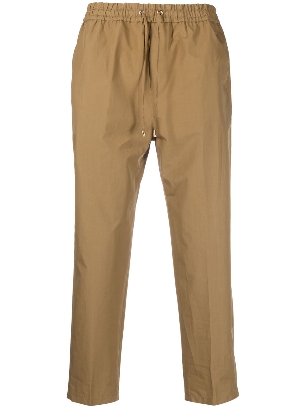 straight-leg cropped trousers khaki cotton elasticated drawstring waistband gold-tone hardware two diagonal pockets to the sides two rear flap pockets pressed crease straight leg cropped Made in Italy Composition Cotton 100% SIZE & FIT Model measurements Height 6 ft 2 in(1.87 m) Bust/Chest 36.41 in(92.5 cm) Hips 37 in(94 cm) Waist 29.52 in(75 cm) FittingInformation This piece fits true to size. We recommend you get your regular size Cut for a slim fit Made with a lightweight non-stretch fabric Washing instructions Machine Wash