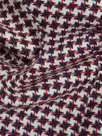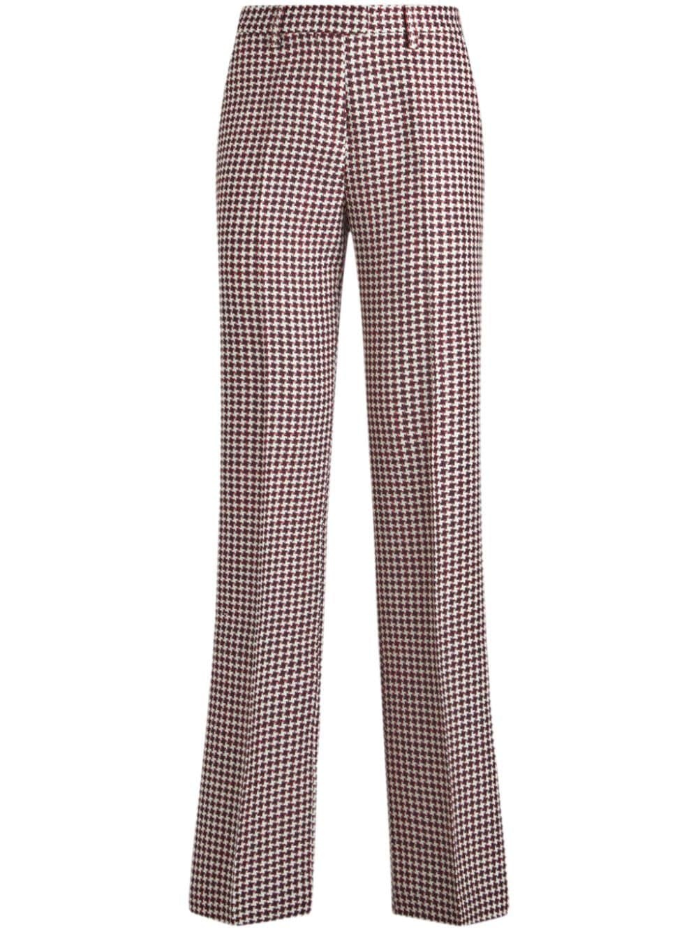 straight-leg tailored trousers Highlights - Blue/white - Houndstooth pattern - Pressed crease - Concealed front fastening - Belt loops - Two side slit pockets - Two rear welt pockets - Straight leg Made in Italy Composition Viscose 59%, Wool 41%