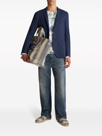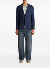 striped cotton blazer Highlights - Navy blue - Cotton - Vertical stripe pattern - Patterned jacquard - Notched lapels - Front button fastening - Long sleeves - Buttoned cuffs - Chest welt pocket - Two side patch pockets - Straight hem Made in Italy Composition Lining: Viscose 57%, Polyester 43% Outer: Cotton 100% Washing instructions Read Manufacturer Guidelines