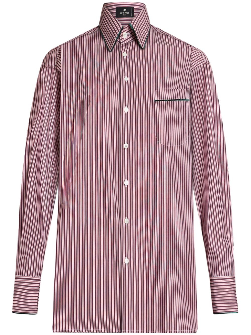striped poplin shirt Highlights - Red/white - Cotton - Vertical stripe pattern - Straight-point collar - Contrasting trim - Front button fastening - Chest patch pocket - Long sleeves - Buttoned cuffs - Straight hem Made in Italy Composition Cotton 100%, Nylon 66%, Polyester 34%