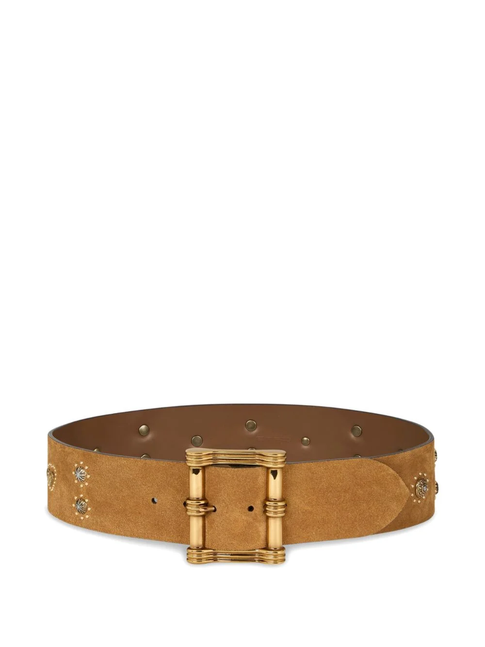 studded suede belt Highlights - Light brown - Studded - Gold-tone hardware - Buckle fastening Made in Italy Composition Calf Suede 100% SIZE & FIT Measurement WIDTH 2.36 in(6 cm)