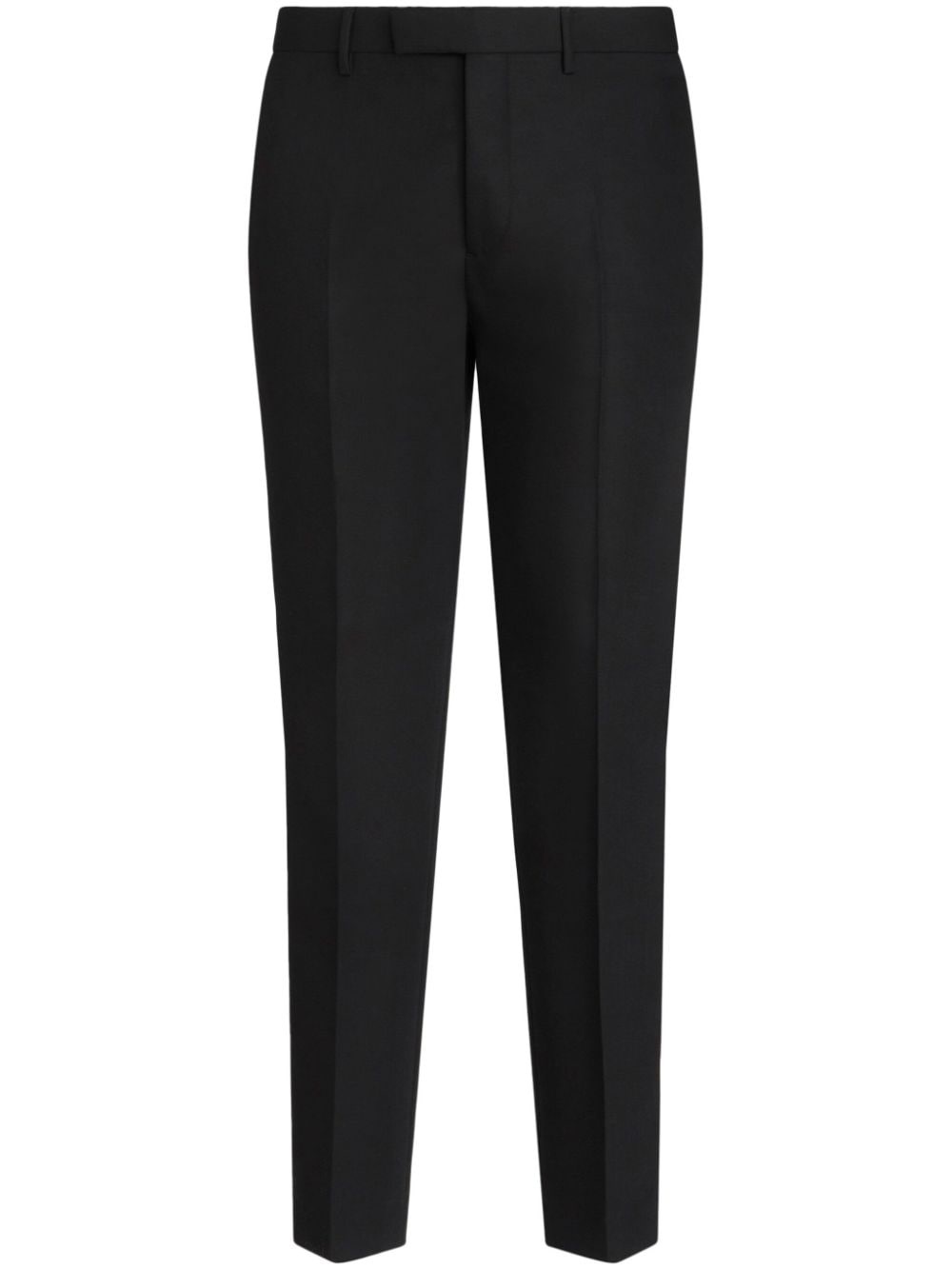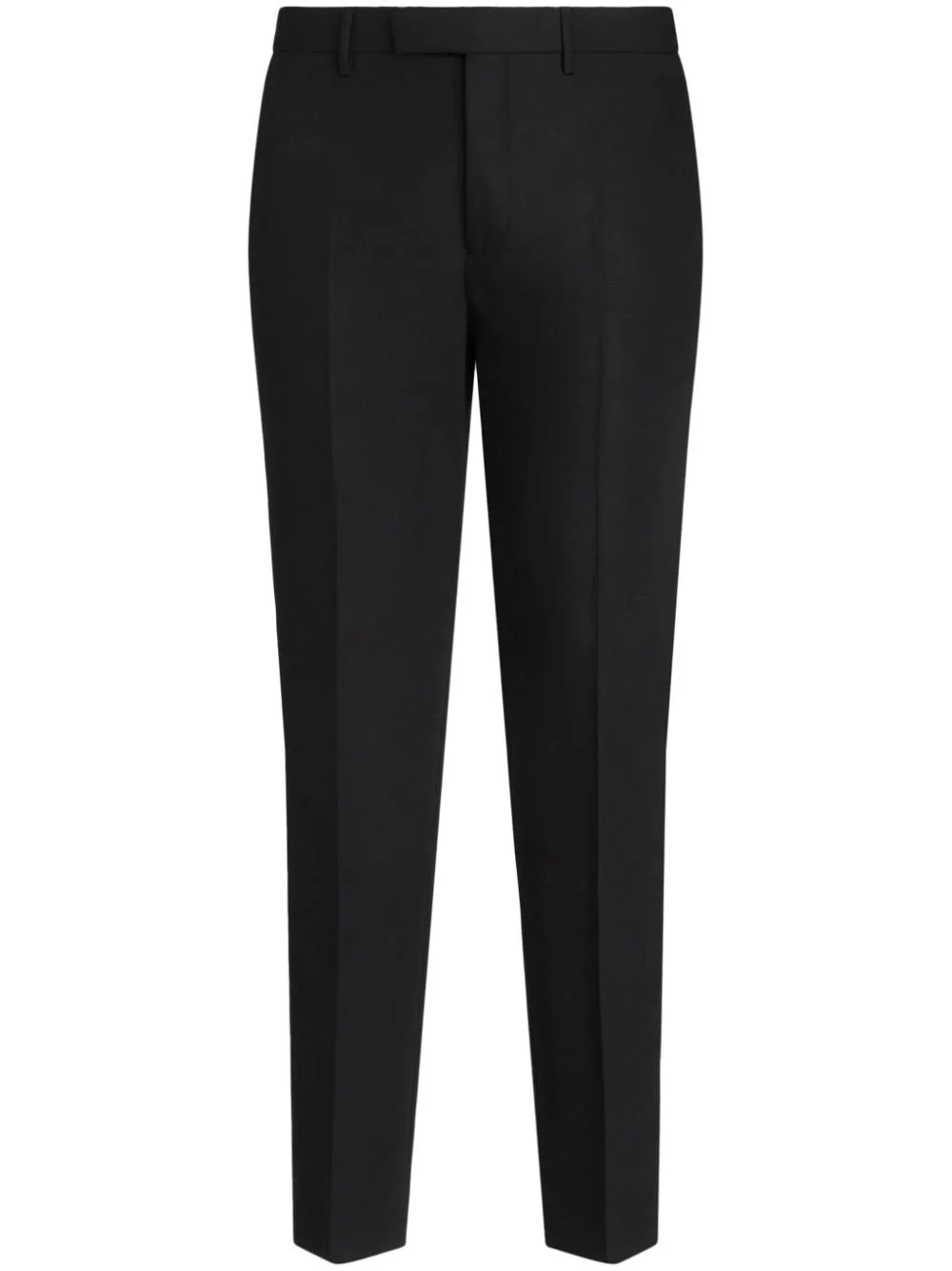tailored slim-cut trousers Crafted from a blend of wool and mohair, these ETRO trousers are cut to a slim tailored silhouette, showcasing the brand's penchant for classic design. Highlights - Black - Wool-mohair blend - Tailored cut - Mid-rise - Belt loops - Concealed front fastening - Slim cut Made in Italy Composition Wool 60%, Mohair 40% Washing instructions Read Manufacturer Guidelines